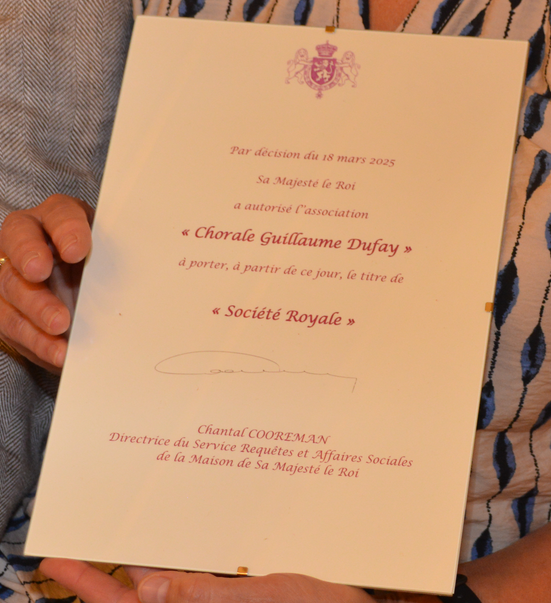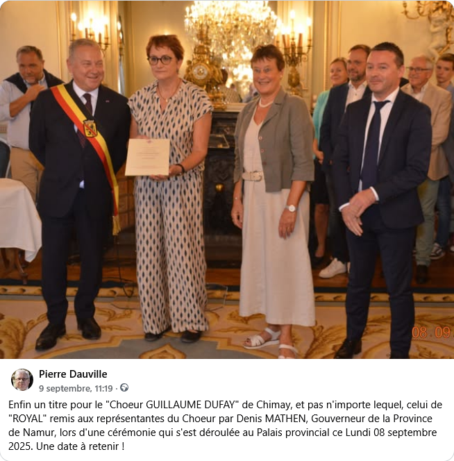 Les membres du "Choeur Royal GUILLAUME DUFAY" présents à Namur lors de la remise du titre "Royal" le lundi 08 septembre 2025.